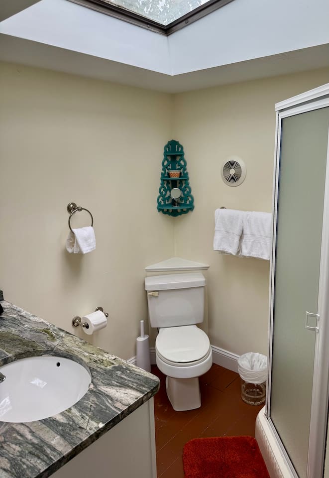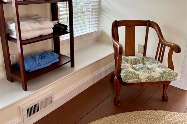 • Spacious Bedroom: Second floor, discover a bright and airy lofted bedroom featuring a king-sized bed and an en-suite full bathroom. Bed linens and bath towels are provided, and the bed is made for your convenience.